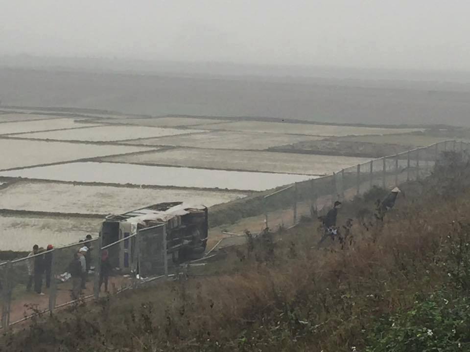 Khi đến địa phận huyện Lập Thạch, tỉnh Vĩnh Phúc, chiếc xe tự đâm vào dải phân cách rồi lao xuống rãnh, cách mặt đường hơn 20m. Vụ tai nạn làm chiếc xe khách hư hỏng nặng, phần thân xe biến dạng, toàn bộ kính chắn gió vỡ vụn, hàng rào thép chắn đường bị húc đổ.
