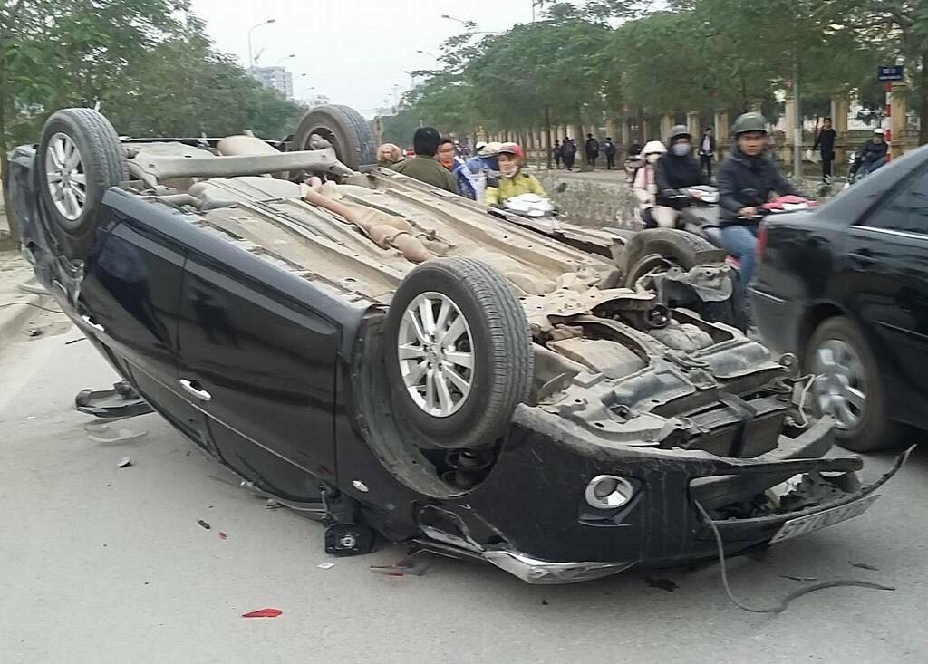 Khoảng gần 17h chiều 7/2, chiếc xe ô tô Toyota Corolla đang lưu thông đến khu vực đường trước cổng trường THCS Thanh Liệt, Thanh Trì, Hà Nội thì bất ngờ mất lái.
