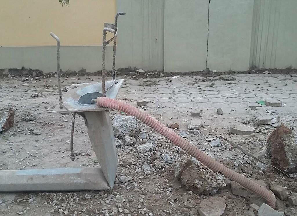 Cú tông mạnh khiến cột điện bị gãy và bật tung khỏi lòng đất.