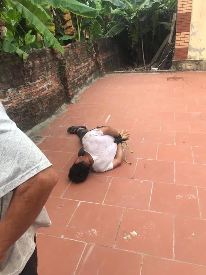 Người đàn ông sàm sỡ bé gái 14 tuổi bị trói tay để giao cho cơ quan chức năng xử lý. Ảnh: báo VTC News