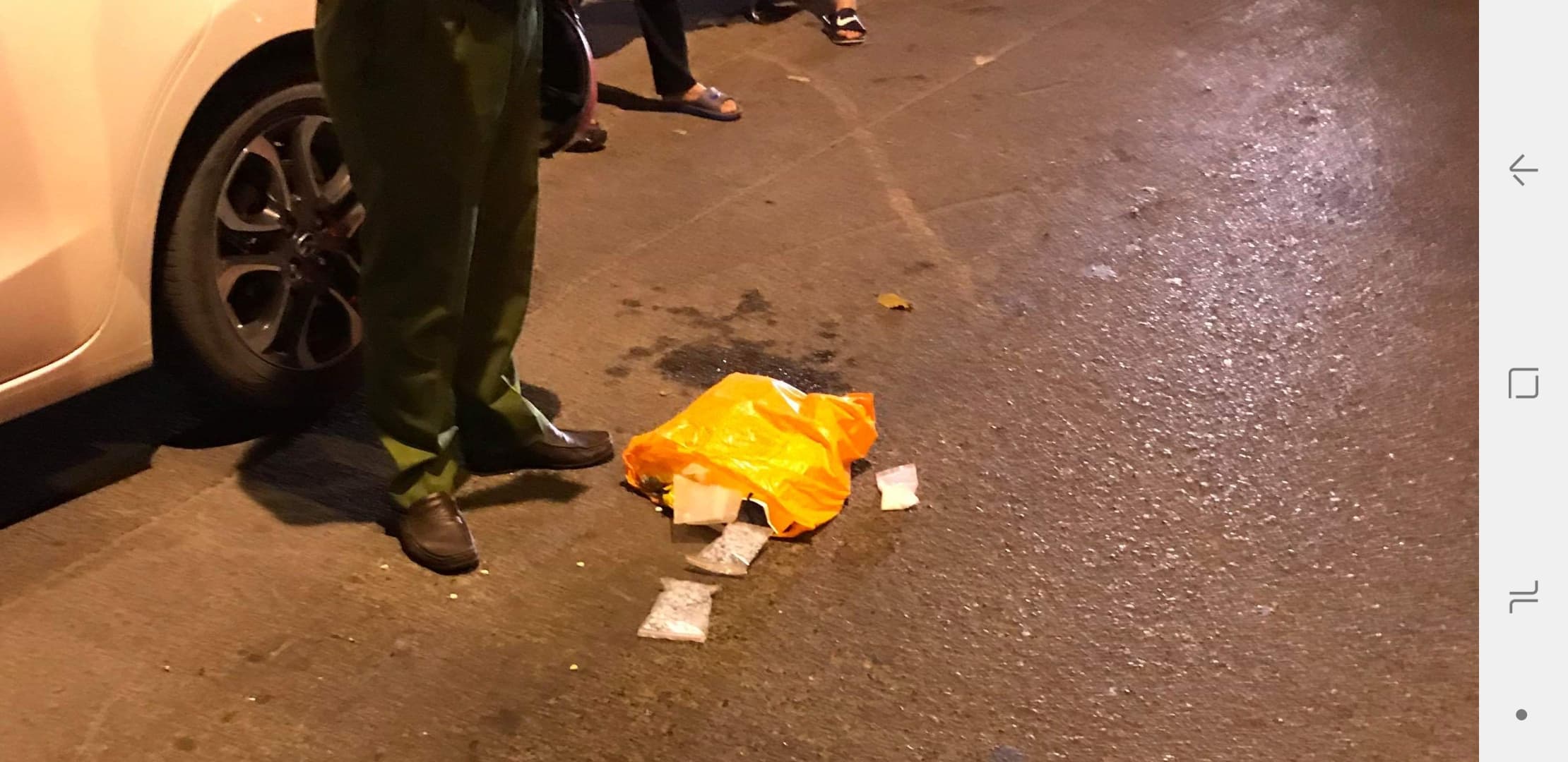 Trên đường tháo chạy, ô tô liên tục lạng lách, ép xe CSGT, đồng thời tài xế xe này vứt 1 bịch nghi chứa nhiều chất là ma túy rồi tiếp tục tăng ga bỏ chạy.
