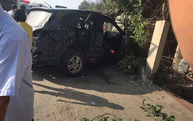Chiếc xe con đi thăm người thân thì không may gặp tai nạn.