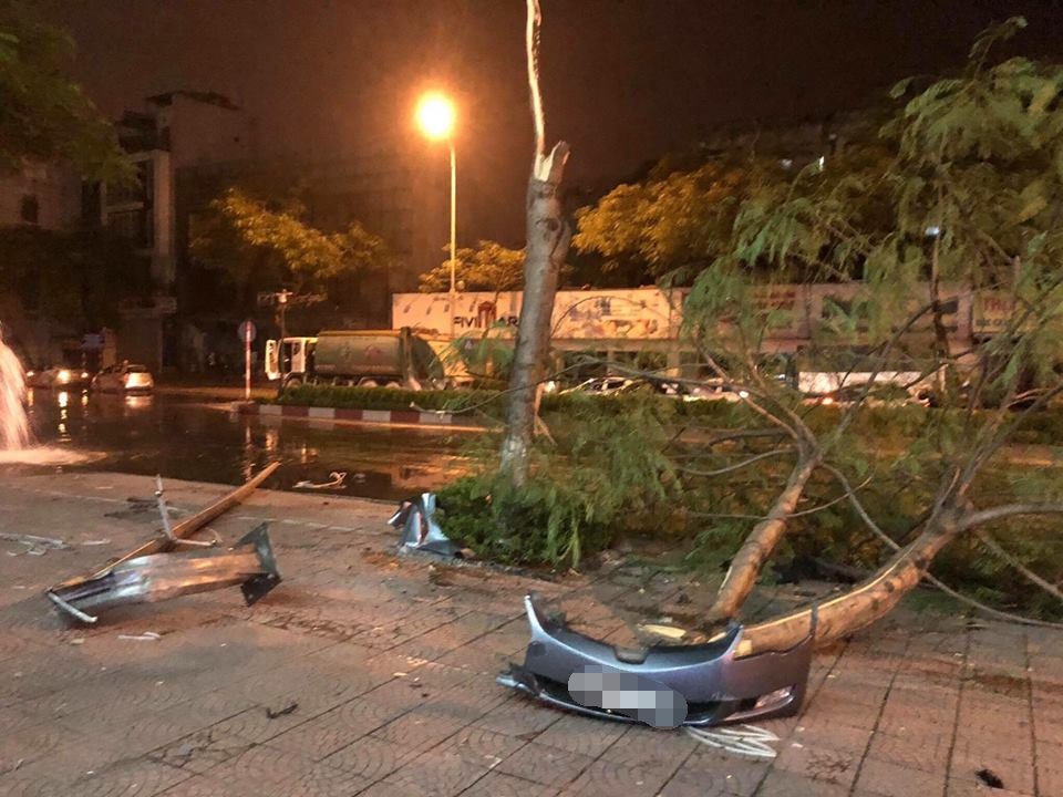 Khi đang di chuyển trên đường Nguyễn Văn Cừ, quận Long Biên xe bất ngờ đâm vào trụ nước phòng cháy chữa cháy ven đường, chưa dừng lại chiếc xe này tiếp tục húc đổ cột đèn điện, gãy ngang cây phượng rồi lật ngửa xe giữa đường.
