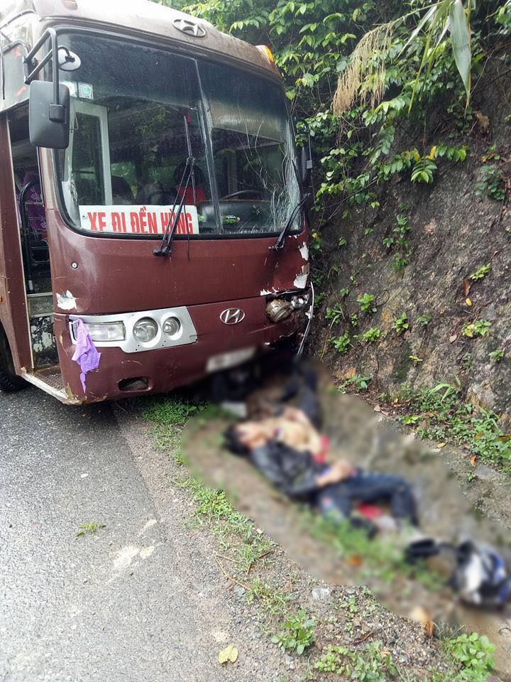 Cú va chạm mạnh khiến nhiều người đi trên 2 xe máy bị thương nặng. Tại hiện trường, ô tô lao vào vách núi, một phần kính trước của xe bị rạn nứt, dưới gầm là một chiếc xe máy, phía trước là 2 nạn nhân. Dưới lòng đường, một chiếc xe máy khác cùng nạn nhân đi xe máy nằm bất động.