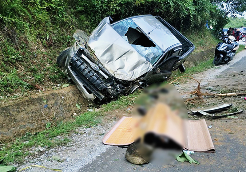 Tại hiện trường chiếc xe bán tải bị hư hỏng nặng, nhiều mảnh vỡ tung tóe ra đường. Những người chứng kiến cho biết trước lúc xảy ra vụ tai nạn, chiếc xe bán tải chạy với tốc độ cao.
