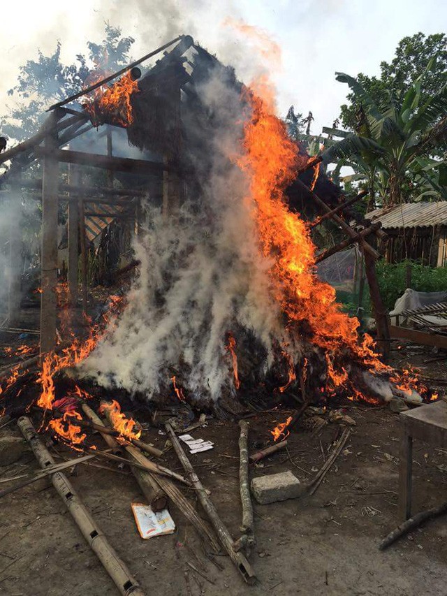 Phát hiện có lửa bốc lên, vợ anh Phùng chỉ kịp ôm con chạy ra ngoài và gọi người dân xung quanh đến dập lửa. Song, do thời điểm đó hàng xóm đều đi làm, chỉ có người già và trẻ nhở ở nhà nên việc dập lửa khó khăn. Vì vậy, chỉ trong chốc lát, ngọn lửa đã thiêu rụi căn nhà.