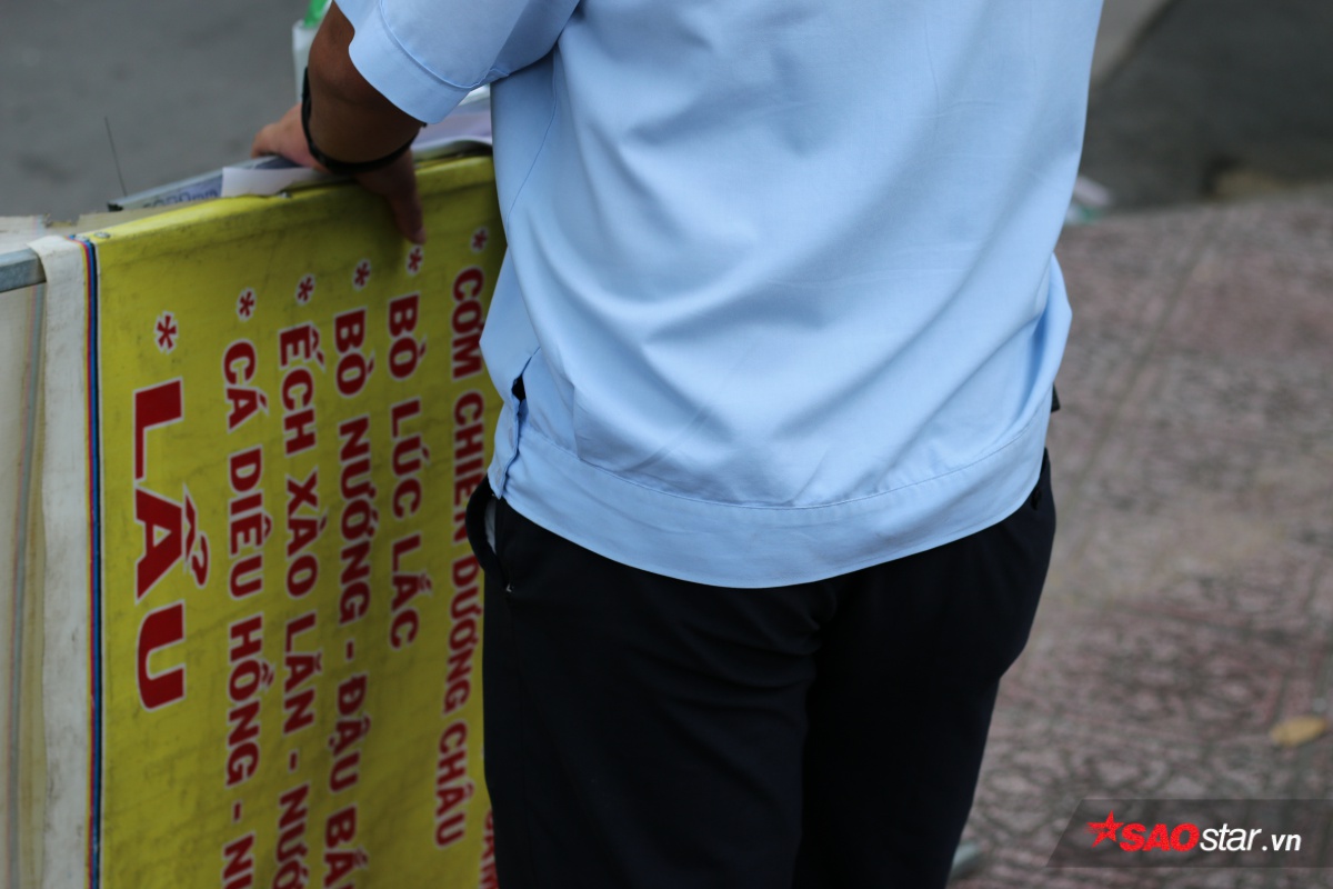 Trên tuyến đường Hoàng Sa, ông Hải chỉ đạo lực lượng xử lý nhiều hàng quán, bảng hiệu quảng cáo lấn chiếm vỉa hè, thu giữ rất nhiều bảng hiệu và xử phạt các xe lấn chiếm.