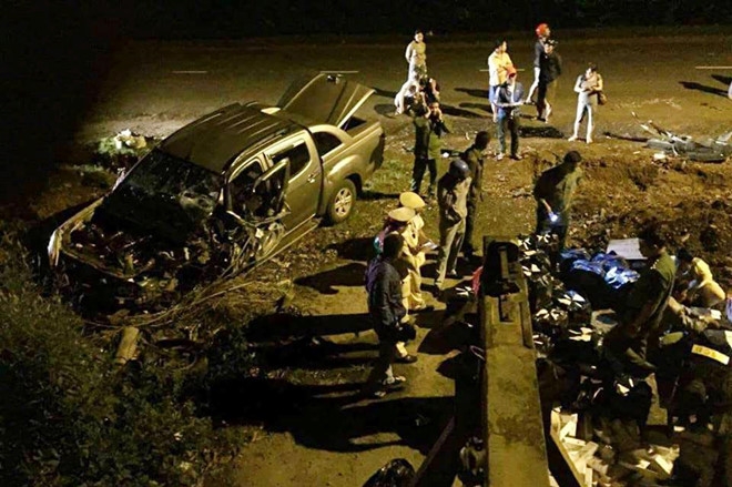 Tuy nhiên, tài xế cho phương tiện chạy khoảng 100 m thì tông vào xe tải do ông Nguyễn Văn Có (45 tuổi, trú huyện Krông Pắk, Đắk Lắk) điều khiển lưu thông hướng ngược lại. Cú va chạm khiến xe tải nát phần đầu, ôtô bán tải hư hỏng nặng.