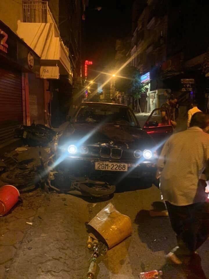 Theo đó, khoảng 1h sáng cùng ngày, một nhóm người đang dừng lại bên vỉa hè mua xôi gần số nhà 96 trên phố Mai Hắc Đế, thuộc địa bàn phường Bùi Thị Xuân, quận Hai Bà Trưng. Đúng lúc này xe ô tô BMW mang BKS 29M-2268 (chưa rõ danh tính tài xế) di chuyển trên đường Mai Hắc Đế hướng đi Trần Khát Chân bị mất lái tông trúng.