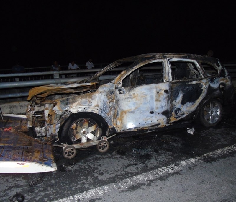 Tuy nhiên, chiếc ôtô đã bị thiêu rụi, chỉ còn trơ khung.
