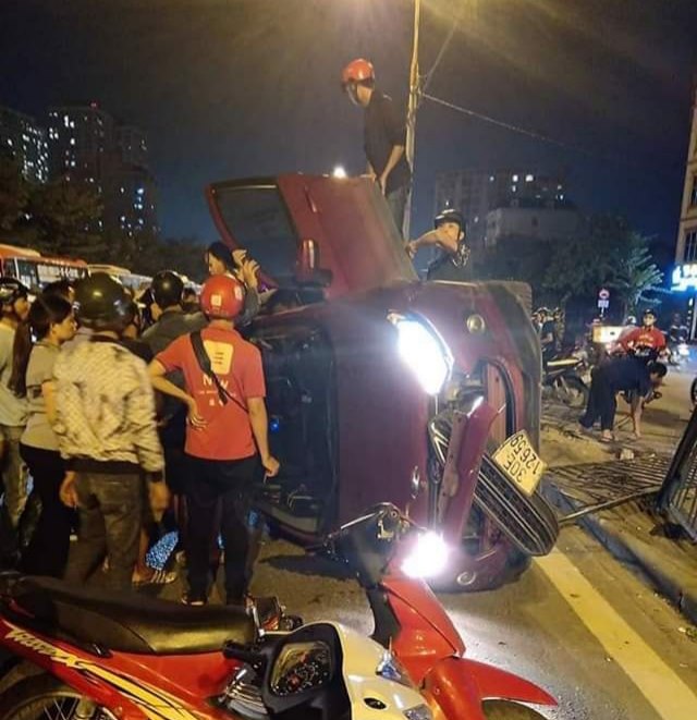 Chỉ huy Công an quận Hoàng Mai thông tin, trên xe có 5 người trong một gia đình và rất may không ai bị thương, còn phương tiện hư hỏng, hàng rào sắt dải phân chia làn đường bị tông đổ.