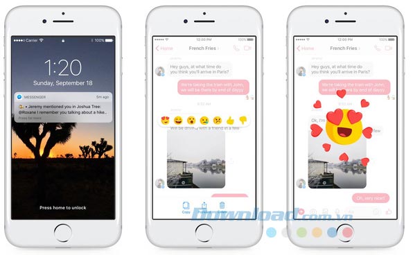 REACTION: Cho phép người dùng thể hiện cảm xúc trực tiếp trên mỗi câu trò chuyện của bạn bè với 7 biểu tượng quen thuộc: Love, Haha, Wow, Sad, Angry, Dislike.