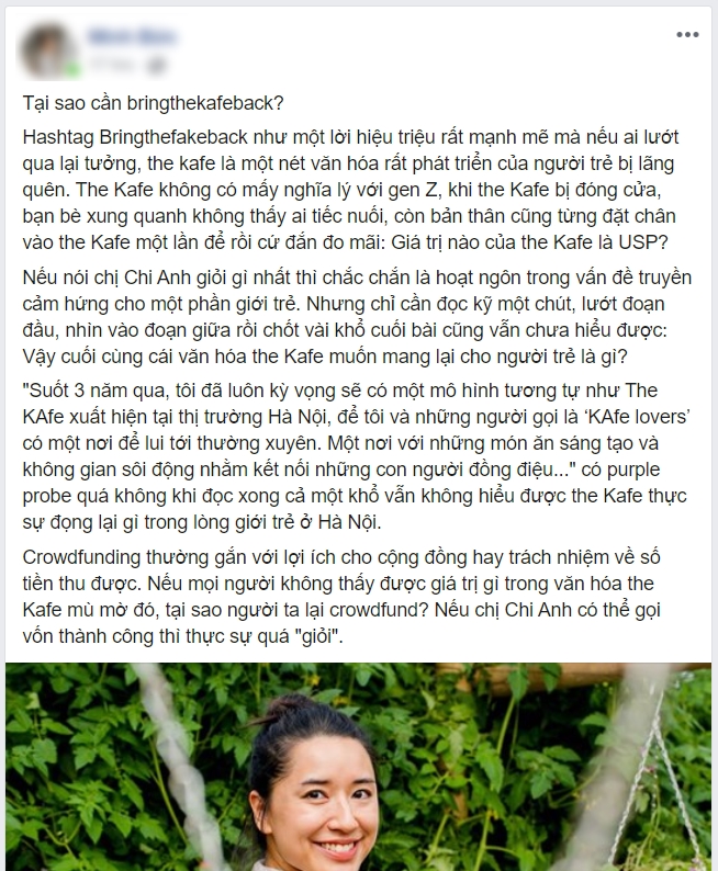 Cư dân mạng chia sẻ ý kiến phản đối về việc CEO Đào Chi Anh kêu gọi gây quỹ cộng đồng để mở lại The KAfe.