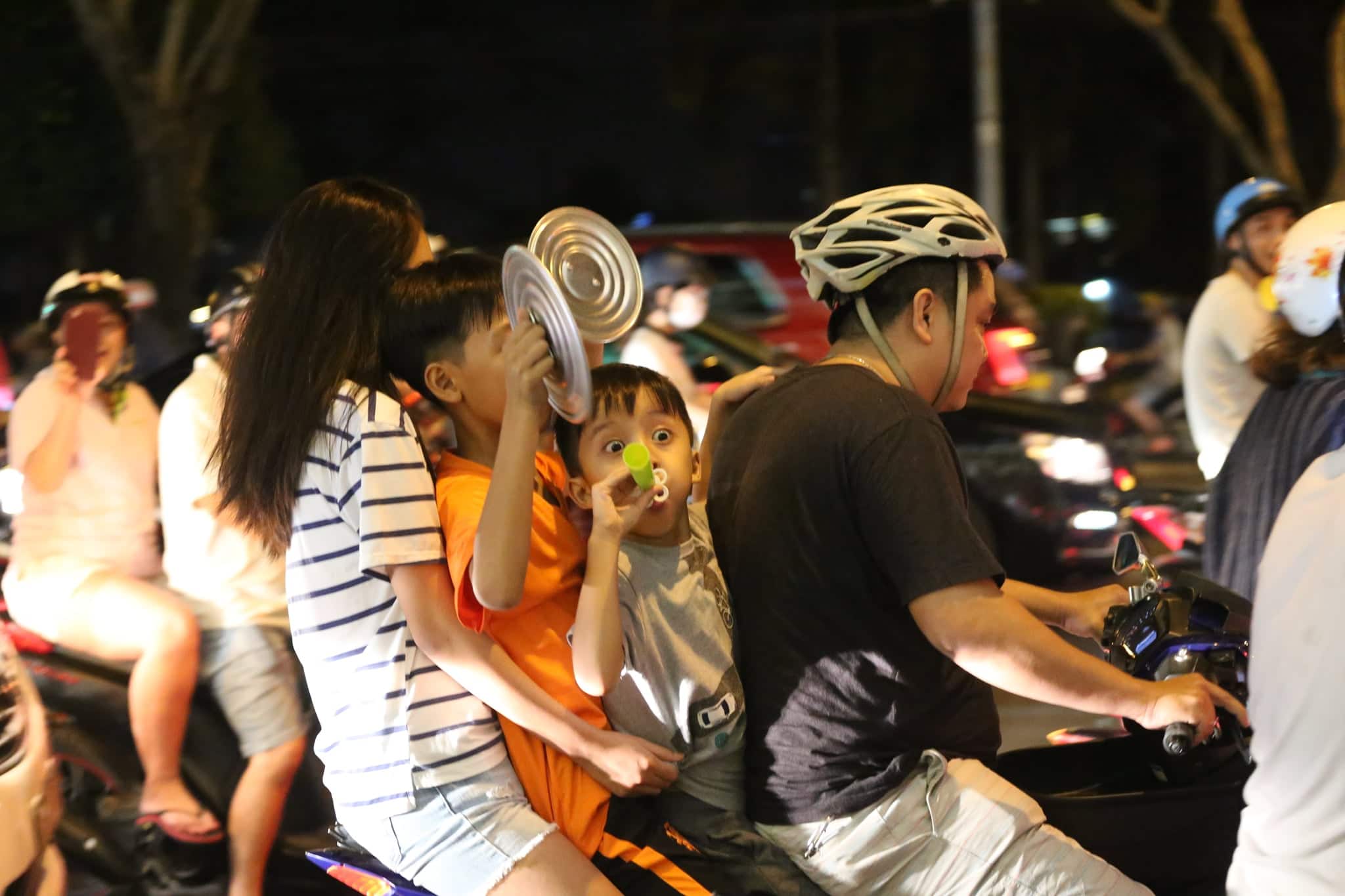 Tại TP.HCM, không khí cũng sôi động không kém. Ngay sau khi tiếng còi kết thúc trận đấu vừa vang lên, ngay trong đêm, người hâm mộ ùn ùn kéo về các tuyến đường trung tâm thành phố để ăn mừng: