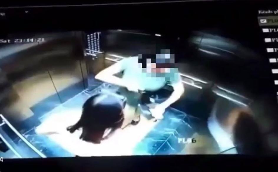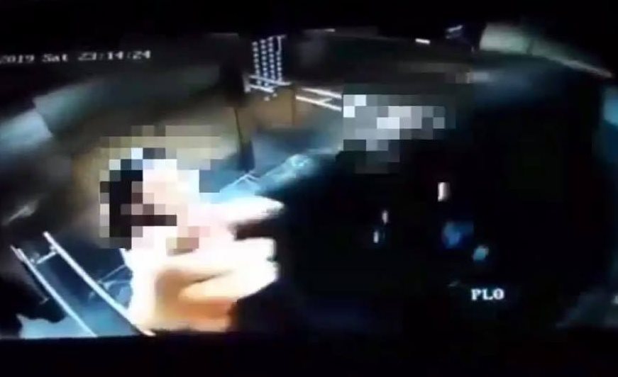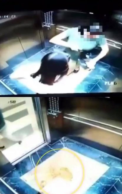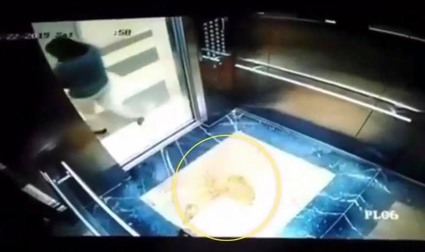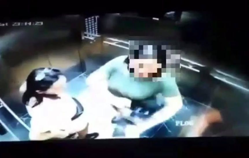 Trong quá trình chờ người quen ra đón, một phụ nữ đã dùng mũ bảo hiểm để che camera, người còn lại có hành động đi vệ sinh ngay trong thang máy chung cư.