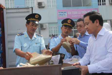 Chiều qua, Hải quan Hải Phòng mở các container hàng này và phát hiện bên trong có chứa hàng chục ngàn đôi giày nhái thương hiệu Adidas và Converse.
