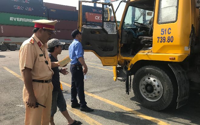 Sáng 23/1, đoàn kiểm tra liên ngành gồm Đội CSGT Cát Lái thuộc Phòng CSGT đường bộ - đường sắt (PC08) phối hợp cùng công an quận 2, cảnh sát hình sự và Tổng công ty Tân Cảng Sài Gòn thực hiện chuyên đề kiểm tra ma túy đối với tài xế container trong cảng Cát Lái.