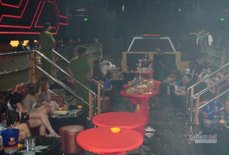 Công an kiểm tra quán bar Holiday Club. Ảnh: Vietnamnet