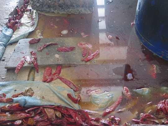 Ớt muối vương vãi dưới sàn. Ảnh: VTC.