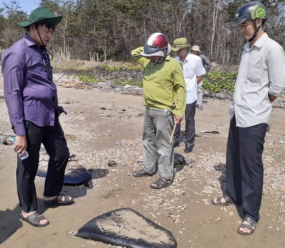 Lực lượng chức năng nhận định chất lỏng này có thể là dầu thô hoặc nhựa đường, số lượng ước tính ban đầu hơn 700 bao, mỗi bao nặng khoảng 25kg.