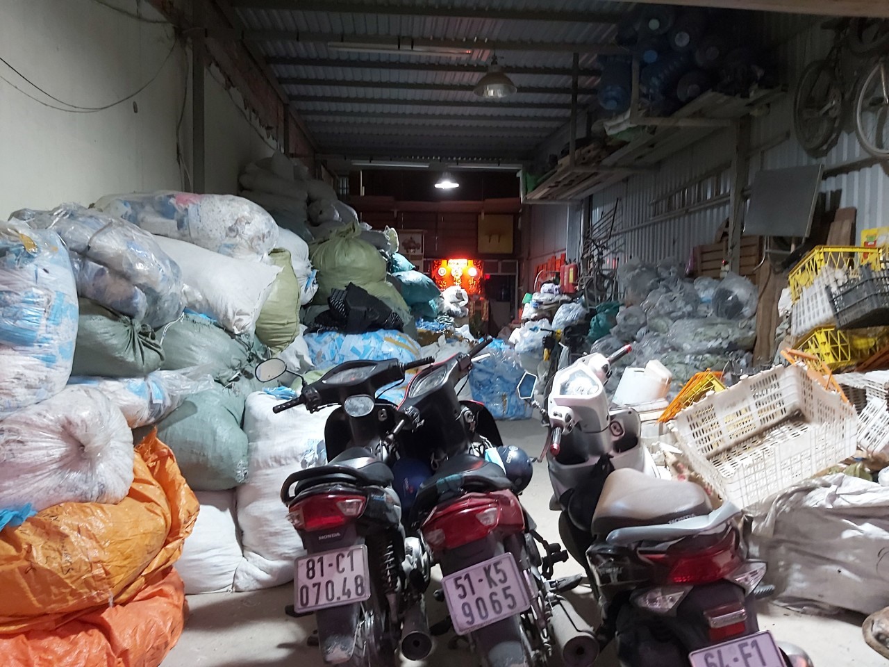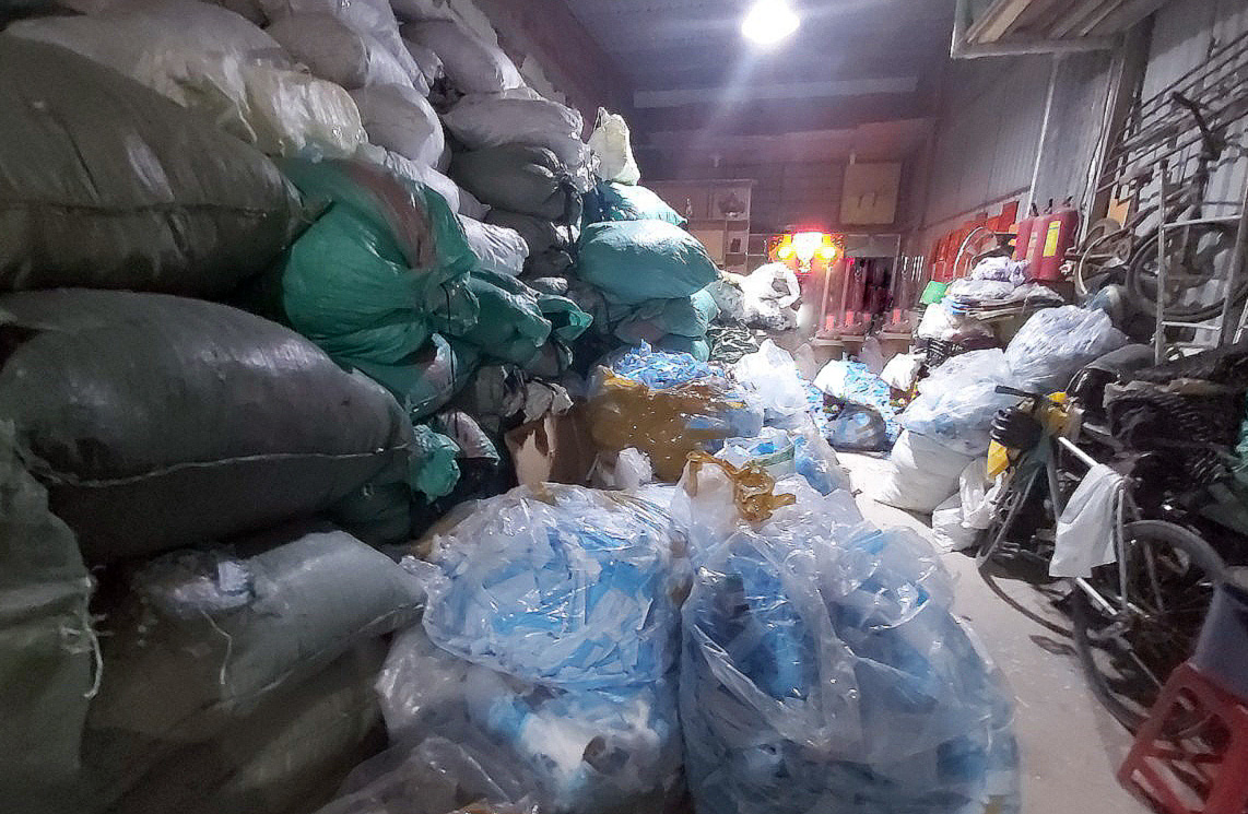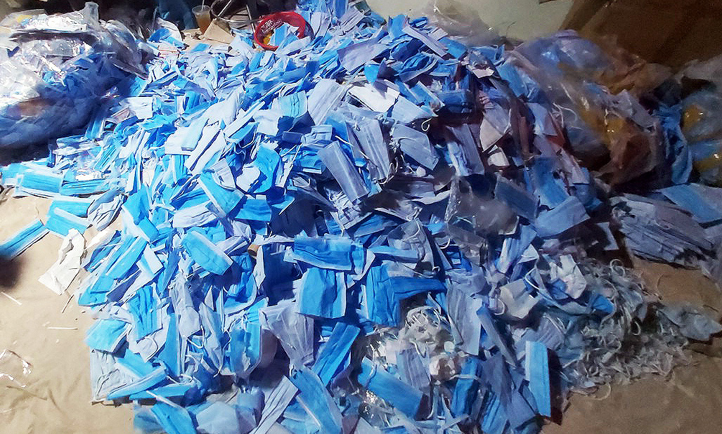 Kho phế liệu chứa hơn 2 tấn khẩu trang y tế đã qua sử dụng ở huyện Bình Chánh, TP. HCM. Ảnh: Lao Động