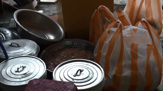 Đáng chú ý, cơ sở này còn chứa hàng đã chế biến ngay trong nhà vệ sinh của gia đình, nước thải sau sơ chế xả trực tiếp ra môi trường, không qua xử lý.