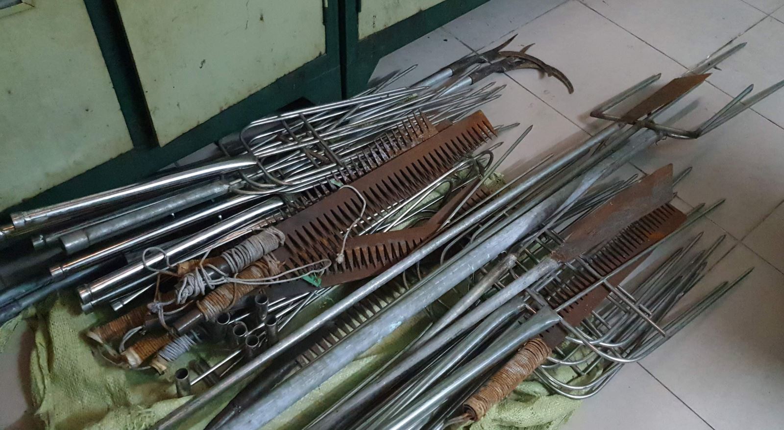 Tại đây, lực lượng Công an phát hiện 1 khẩu súng tự chế và nhiều hung khí tự chế như: ba chĩa; dao, rựa… nên tiến hành lập biên bản, thu giữ.