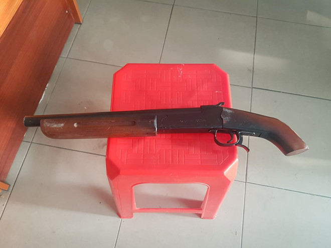 Khẩu súng Công an thu giữ khi kiểm tra hành chính căn nhà 1458 Hoài Thanh. Ảnh: Báo Thanh Niên