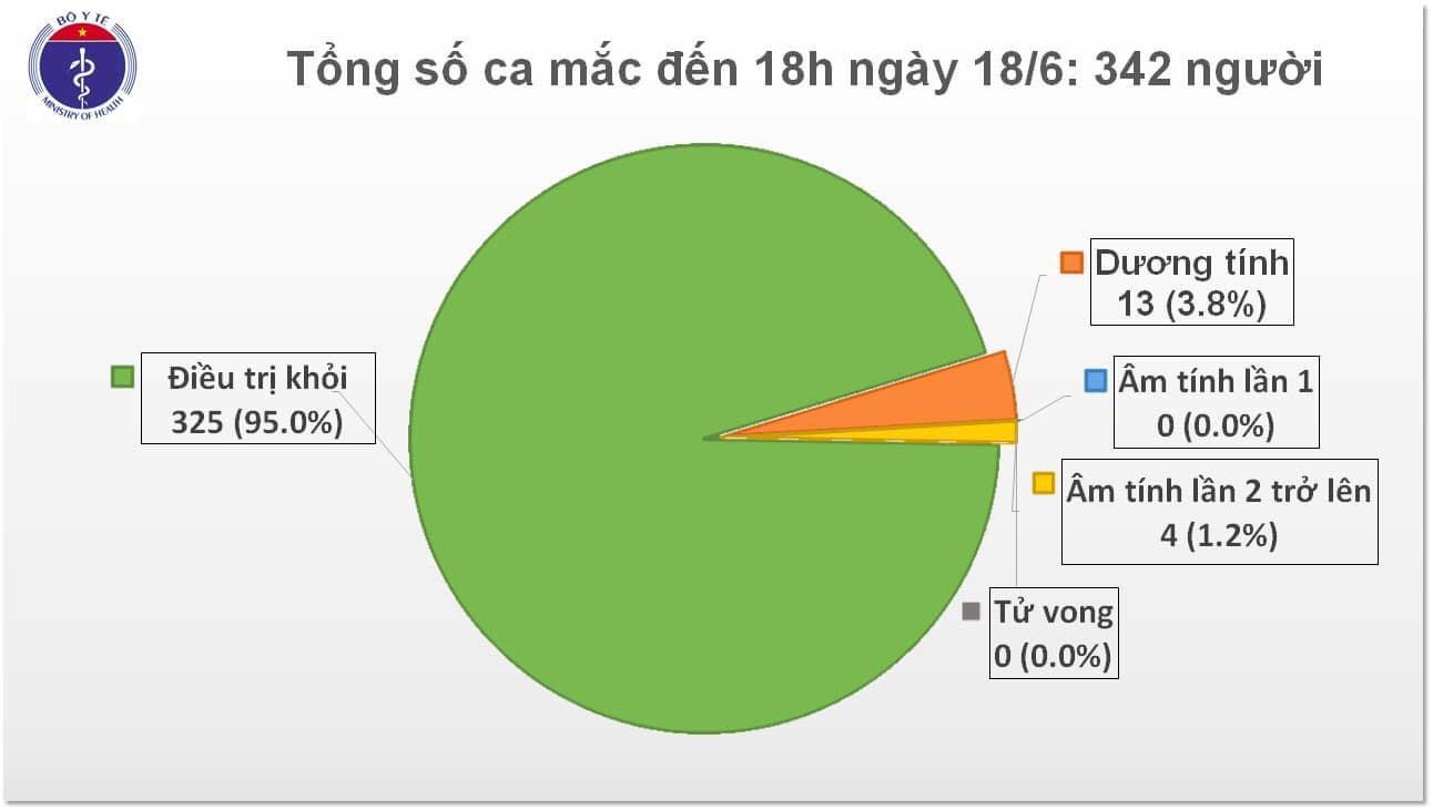 Như vậy, tính đến 18h ngày 18/6, Việt Nam có tổng số 342 bệnh nhân mắc COVID-19, trong đó có 202 bệnh nhân được cách ly ngay sau khi nhập cảnh; 63 ngày liên tiếp không có ca nhiễm trong cộng đồng.