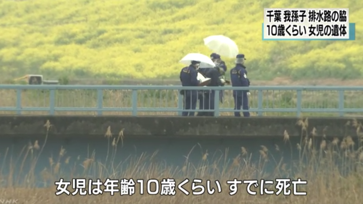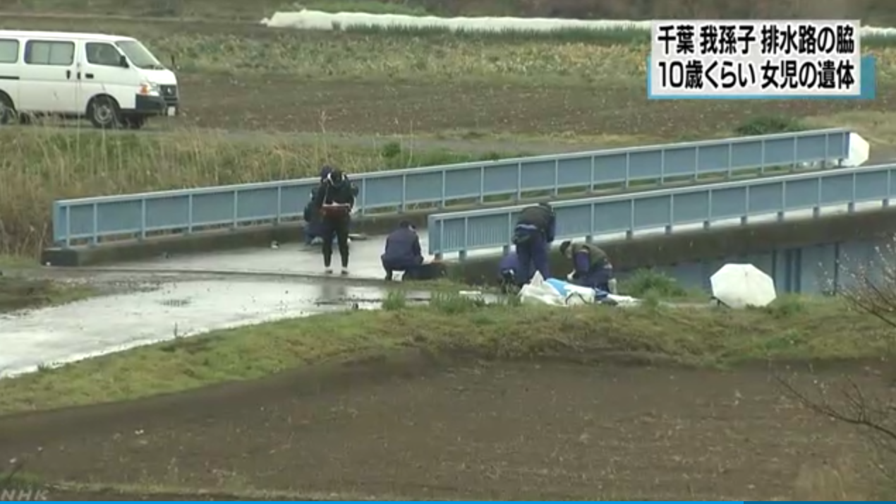 Rạng sáng ngày 26/3, tại một cống thoát nước thuộc thành phố Abiko, quận Chiba, Nhật Bản một thi thể bé gái khoảng 10 tuổi đã được tìm thấy trong trạng thái không có quần áo mặc trên người và hoàn toàn không mang theo bất cứ vật dụng cá nhân gì.