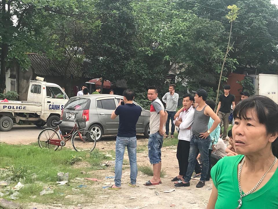 Rất đông người dân có mặt gần khu vực nơi phát hiện thi thể nạn nhân.