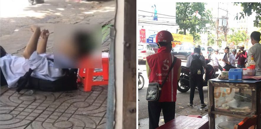 Sau đó, một người khác, được cho là đi cùng với nam sinh đưa cho chai nước Một lúc sau, nam sinh mới có thể tự đứng dậy.