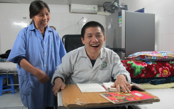 Chàng trai ấy là Trần Văn Hải 35 tuổi, ở thôn Cống Đặng, xã Hồng Sơn, huyện Mỹ Đức, Hà Nội. Tại Trung tâm Phục hồi chức năng, Bệnh viện Bạch Mai (Hà Nội) những ai biết chuyện cũng khâm phục nghị lực phi thường của cả gia đình anh. Ngày nay nhìn anh khuôn mặt tươi tỉnh, ú ớ nói chuyện, ngồi xe lăn tập viết chữ, bạn sẽ không ngờ rằng trước đó anh chỉ có thể nằm co quắp trên giường bệnh.