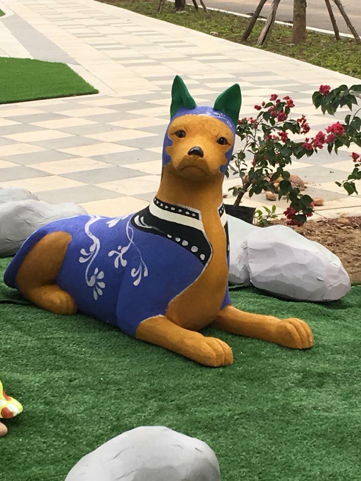Bên cạnh 2 chú chó lớn, ở đây còn trang trí thêm cả các chú chó nhỏ. Nhìn đàn chó mặt mũi con nào con đấy đều hiền lành, ngơ ngác khiến ai cũng thích thú. Ngay lập tức, dân mạng cũng update liên tục những bức ảnh mô hình chó ấn tượng ở quê hương mình.