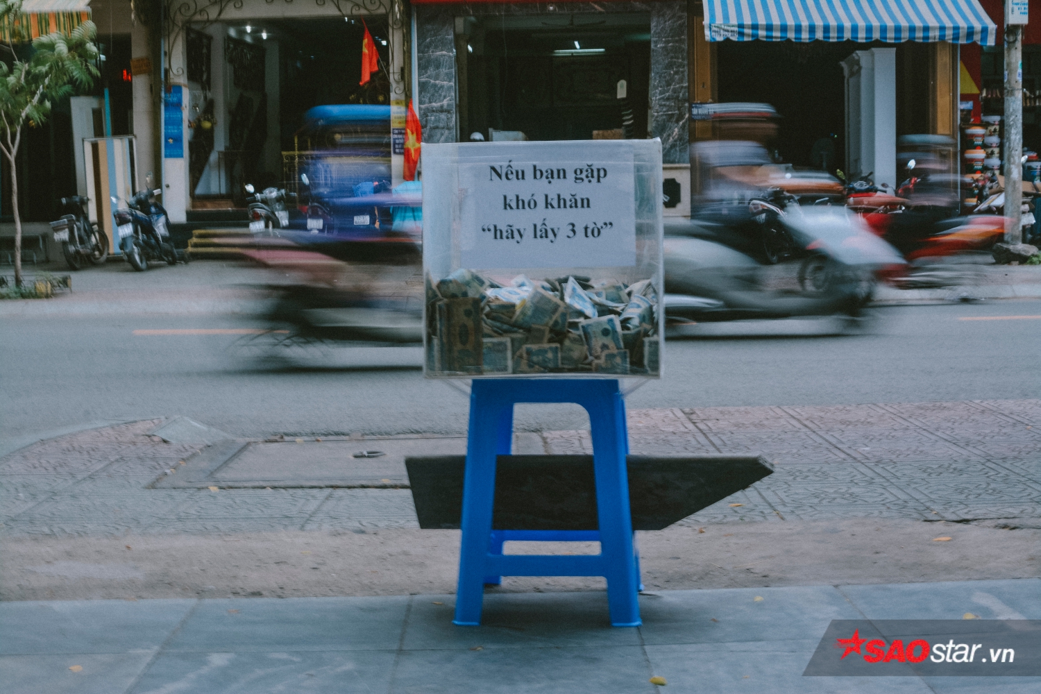 Tờ 5 ngàn xanh và thùng tiền từ thiện kỳ lạ trên đường phố Sài Gòn
