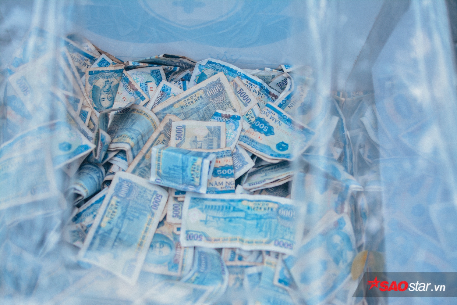 Tất cả sẽ được các chú bảo vệ đổi ra những tờ tiền 5 nghìn đồng để bỏ lại trong thùng.