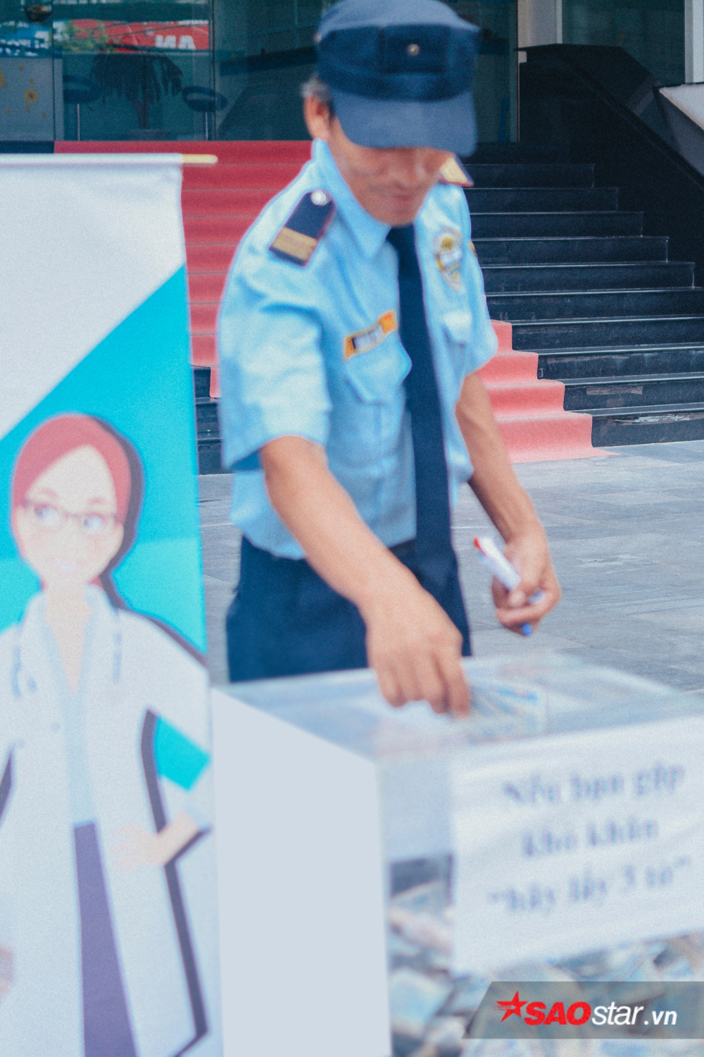Cứ thế, chỉ một buổi chiều thôi, tôi đã chứng kiến bao nhiêu người như chú xe đạp, anh văn phòng,… vội vã tạt ngang qua thùng tiền để quyên góp, rồi lẳng lặng đi. Có khi là đồng tiền lẻ vón cục, khi là 10 nghìn, 20 nghìn, 50 nghìn, 100 nghìn… Chẳng ai thắc mắc chủ nhân thùng tiền là ai, nó có từ đâu, và tự bao giờ, họ chỉ bỏ vào đó số tiền như tấm lòng của mình. Chỉ khi người ủng hộ rời đi, những bác bảo vệ lại chạy ra thùng tiền, lấy tờ polime đổi ra thành nhiều tờ 5 nghìn đồng bỏ lại vào thùng. Mấy chú chia sẻ: “Bởi vì thế mà tiền nhiều, ai cũng có và luôn được chia sẻ công bằng như nhau”.