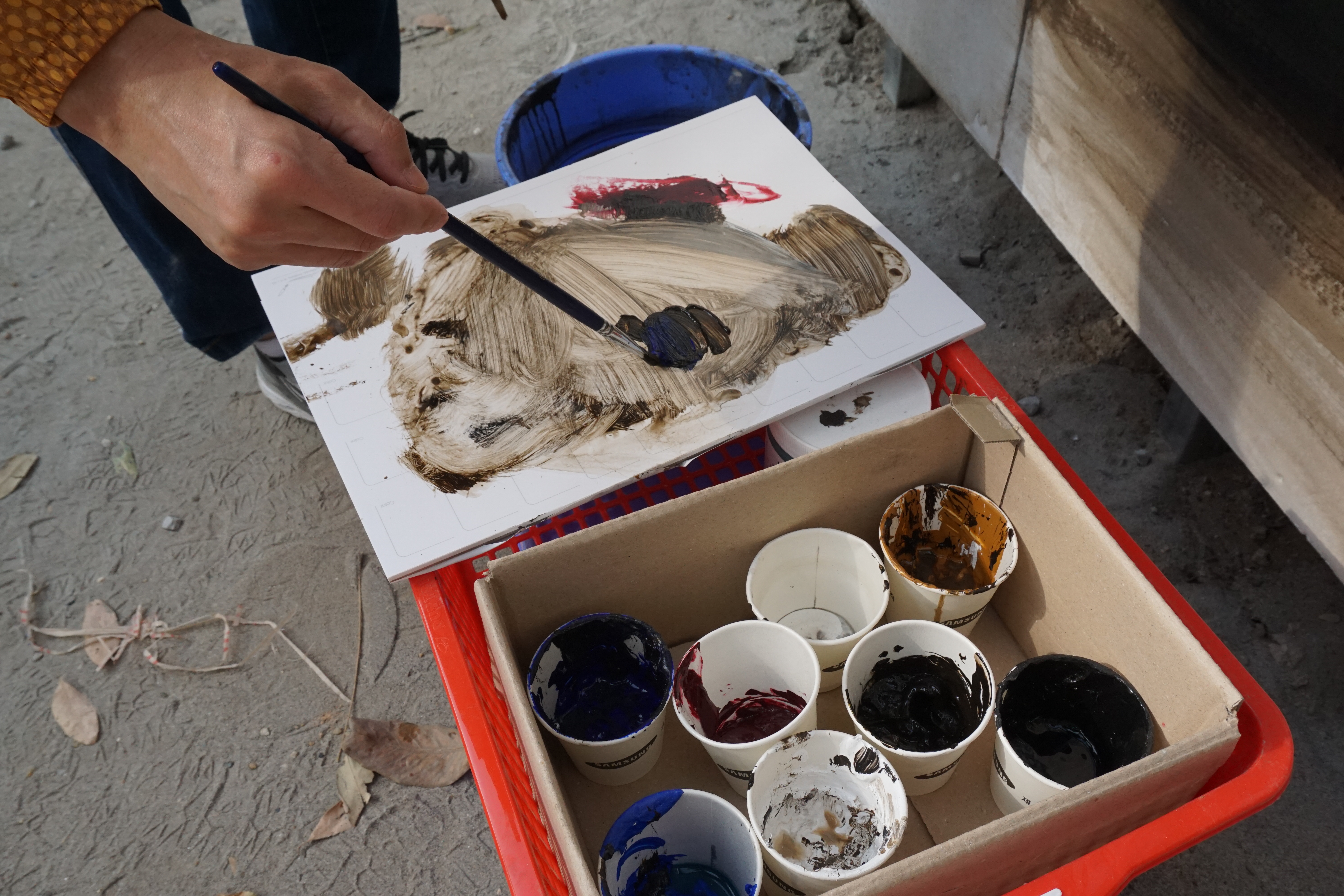 Ông Park Kyoung Chul - Trưởng đại diện Quỹ giao lưu quốc tế Hàn Quốc chia sẻ, trải qua quá trình sống và làm việc tại Hà Nội, ông đã nhìn thấy cái “chất” của người Hà Nội đang hòa lẫn trong dòng chảy sôi động của quá trình đô thị hóa và công nghiệp hóa. Ảnh: Màu sắc được pha chế.