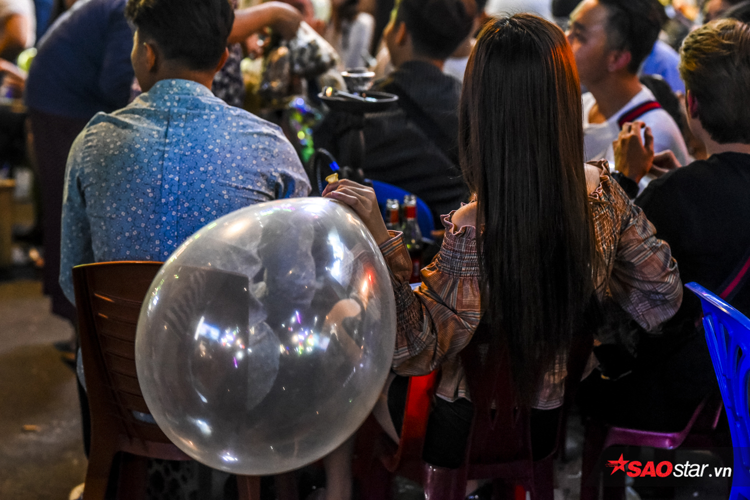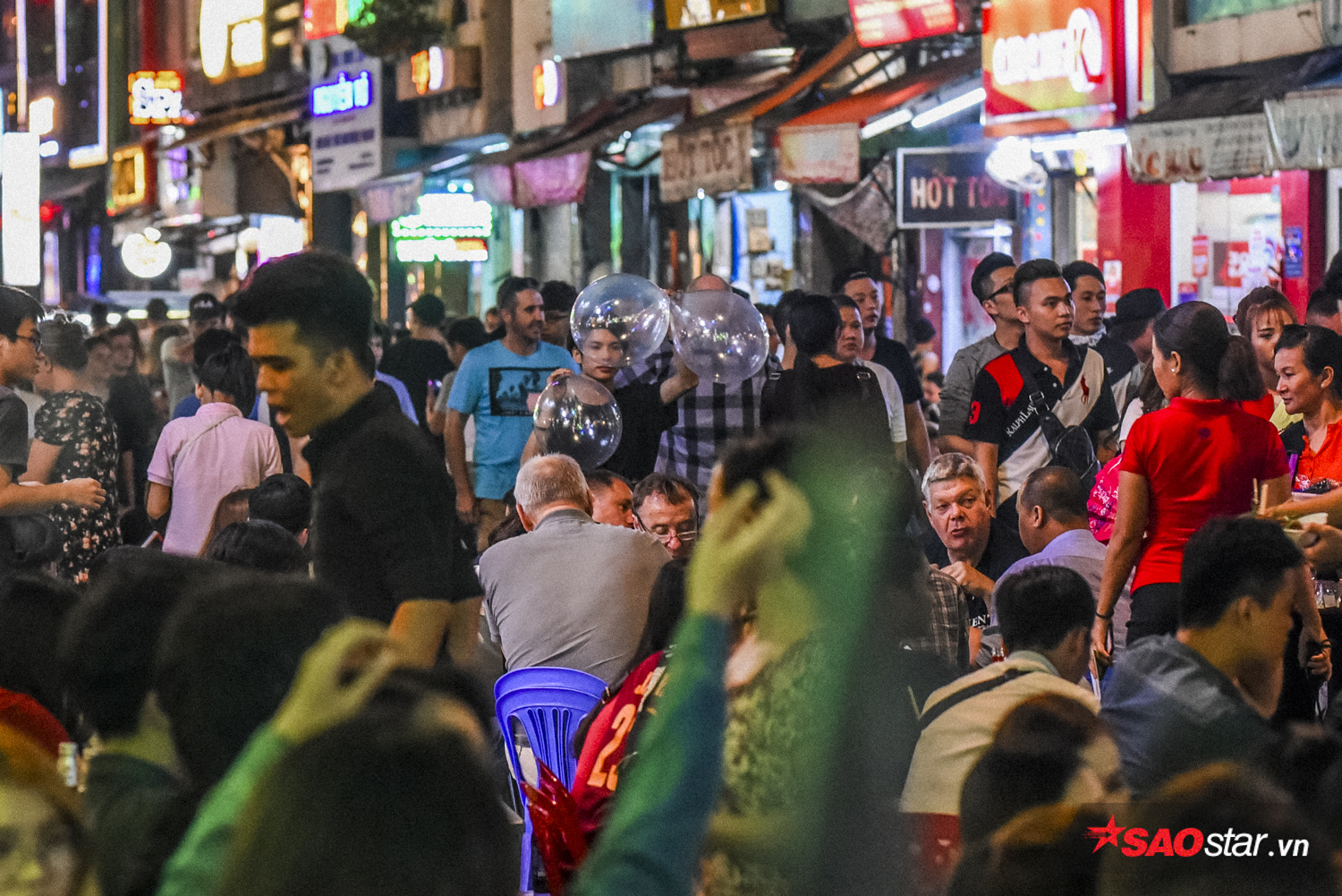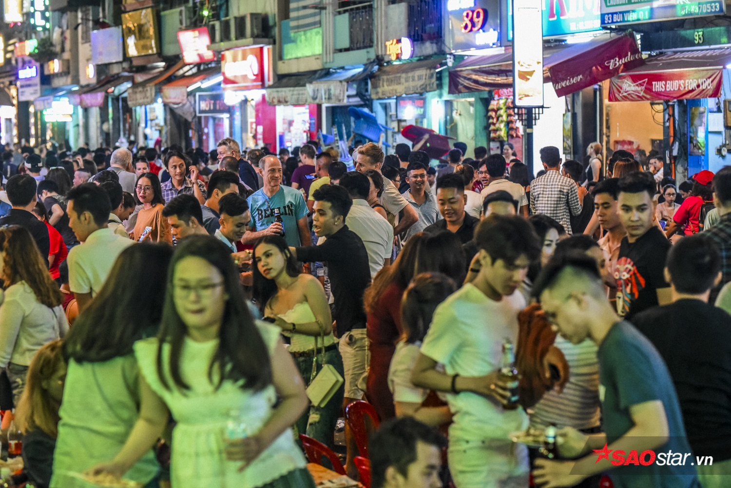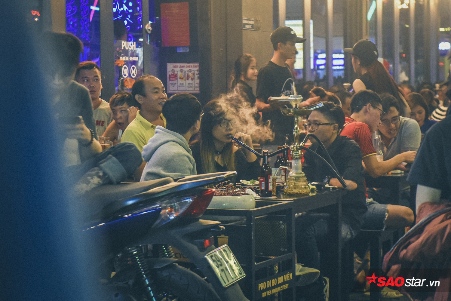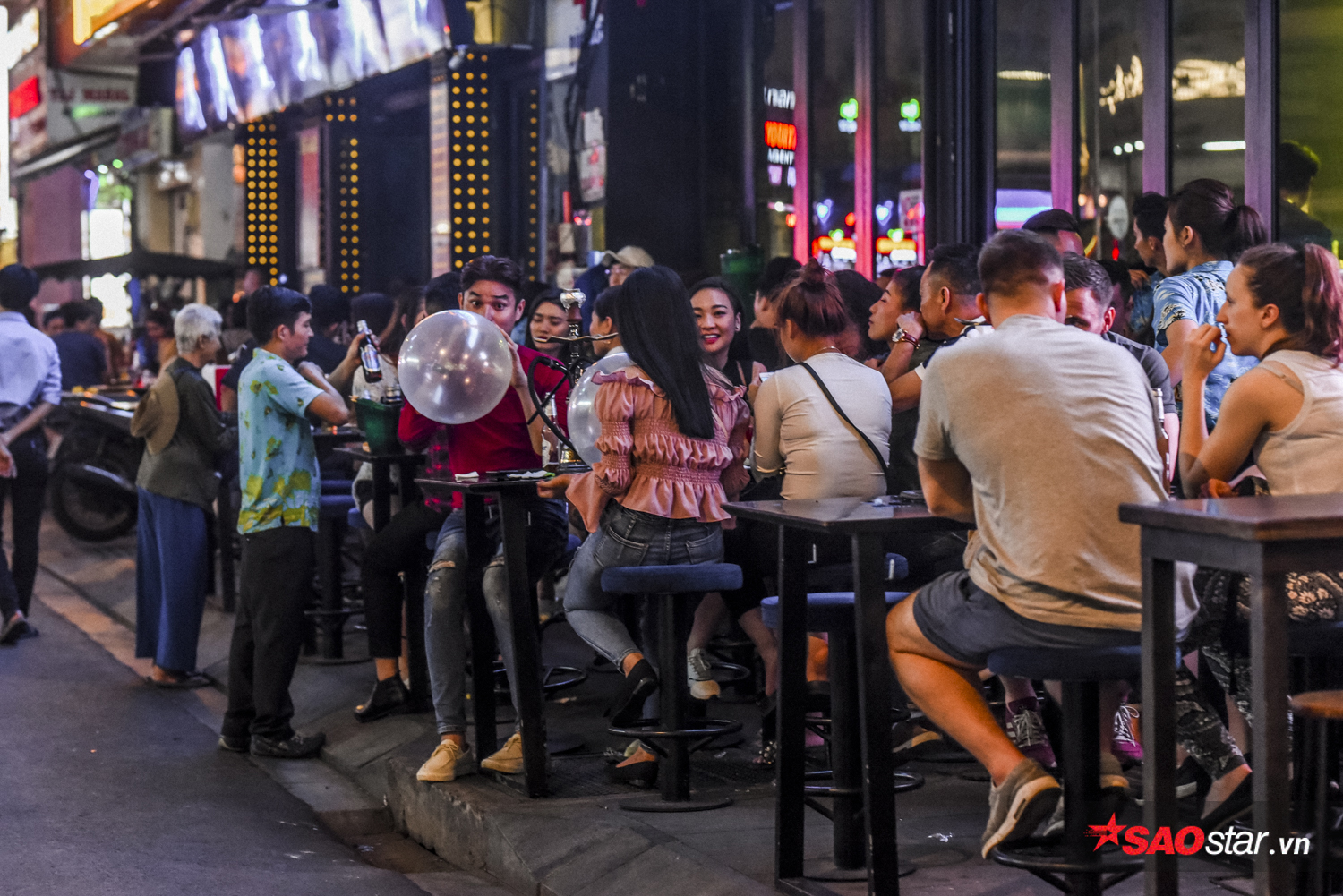 Cư như thế, văn hóa nhậu thâu đêm là một phần không thể thiếu của phố đi bộ Bùi Viện. Con phố luôn ồn ào, và thỉnh thoảng lại rộ lên một tràng cười khoái chí, náo loạn của các nhóm hít bóng cười.