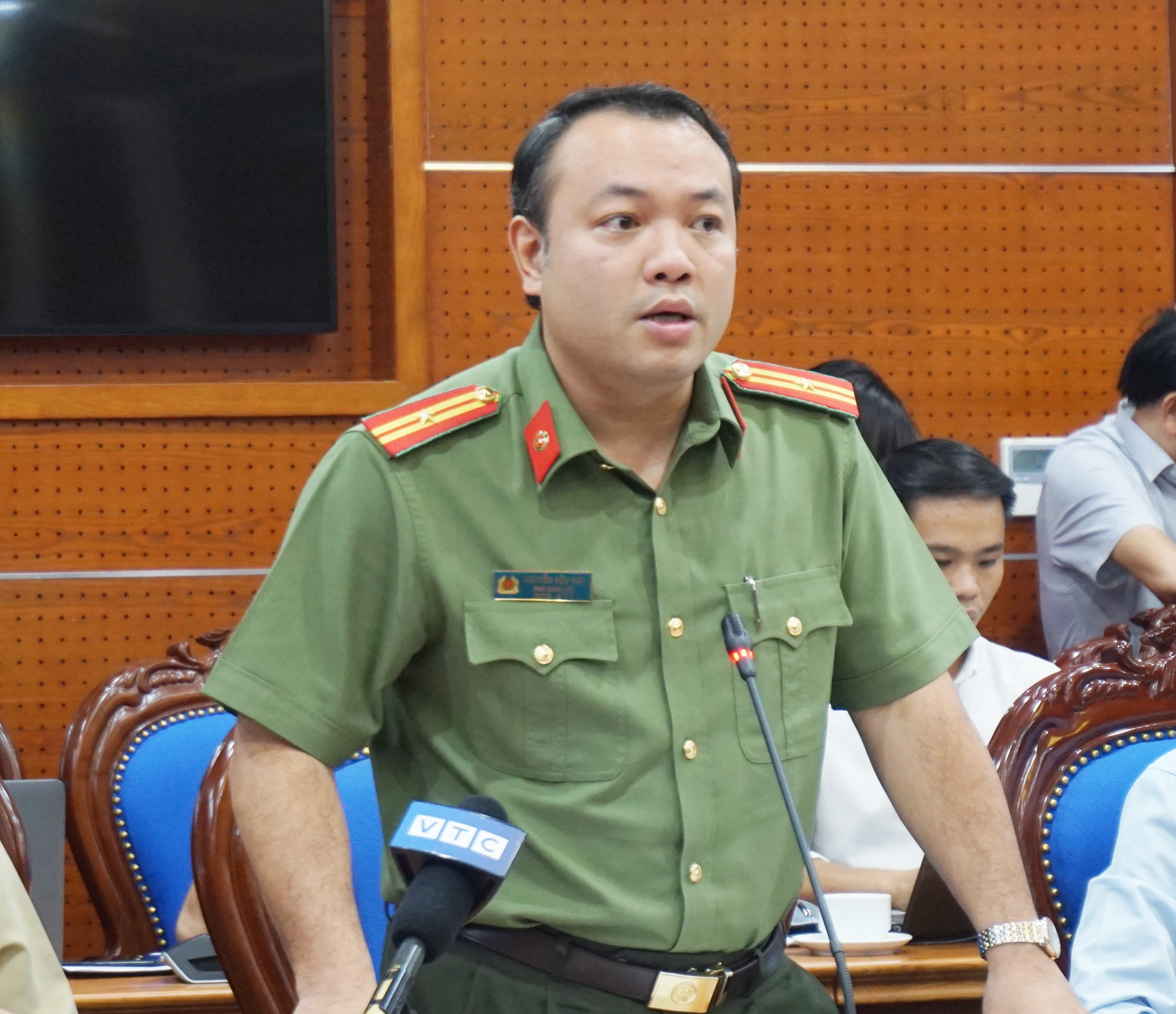 Thiếu tá Nguyễn Hữu Đức, Đại diện Công an tỉnh Hòa Bình thông tin.