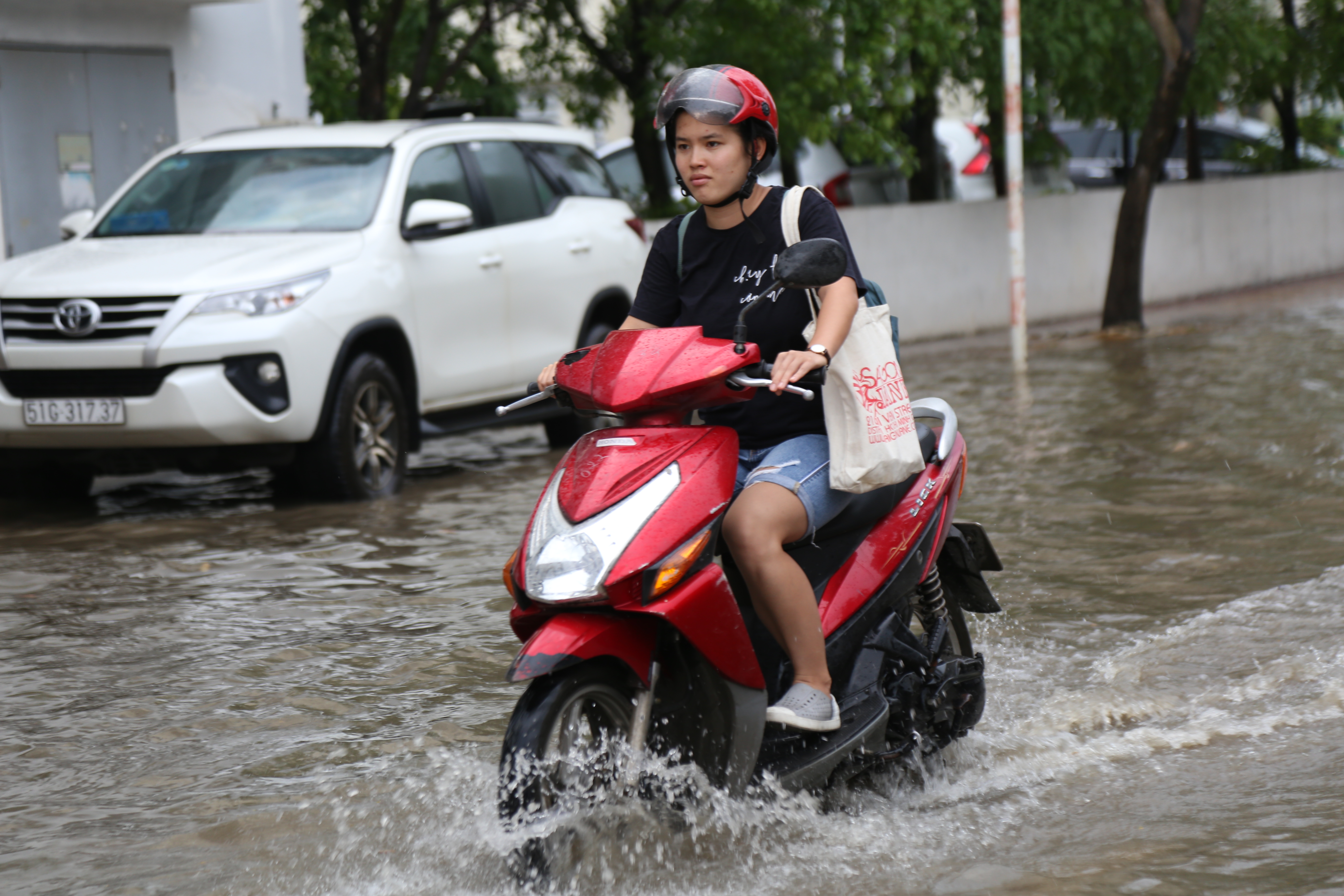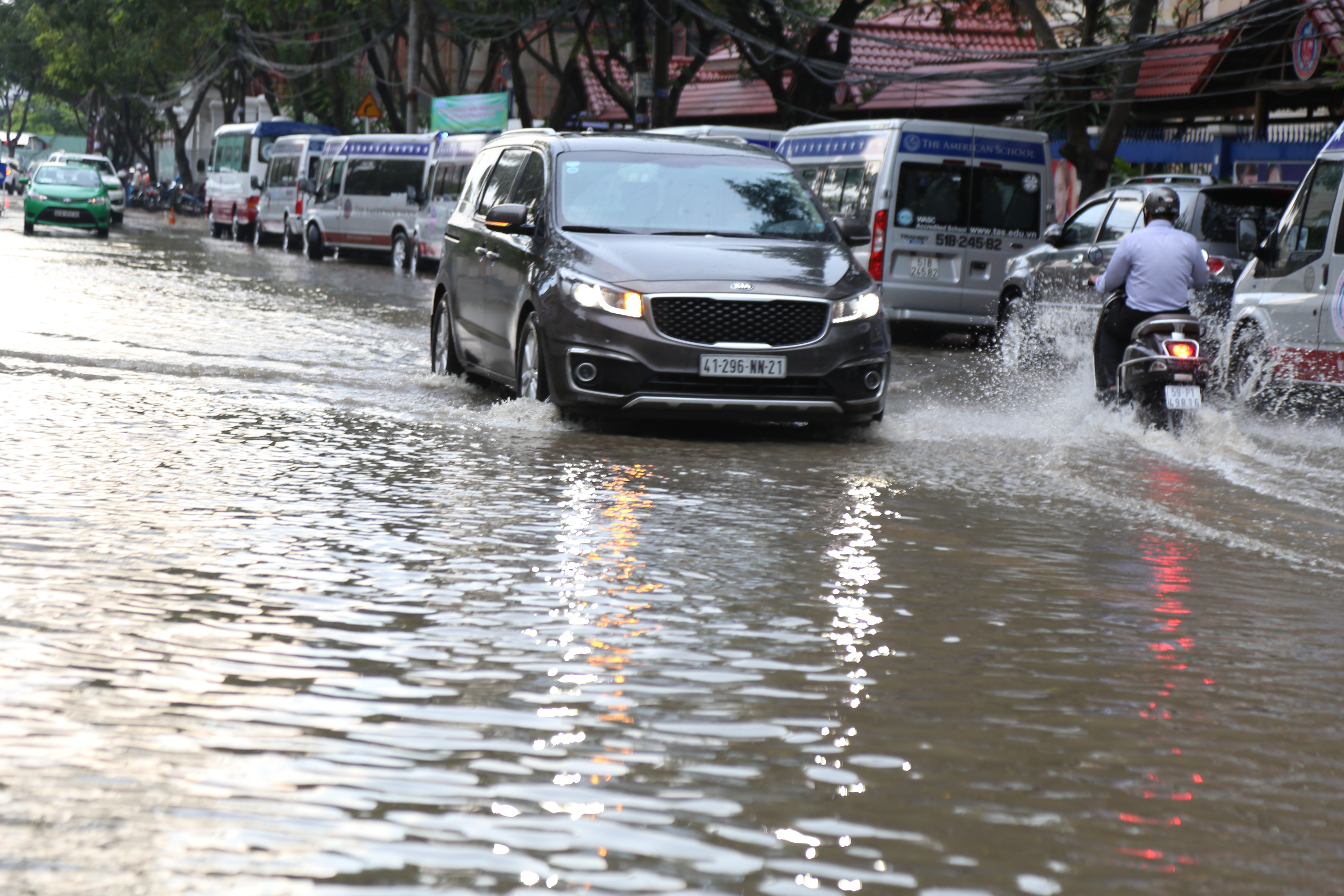 “Mỗi lần trời mưa lớn là khoảng 15 phút sau con đường Nguyễn Văn Hưởng lại ngập nặng. Điều trớ trêu là ngập sâu tại đoạn trước trường học khiến các cháu học sinh lúng túng tìm đường về nhà, cha mẹ của chúng lại ô tô chạy vào đón thì bị chết máy”, một người dân phường Thảo Điền chia sẻ.