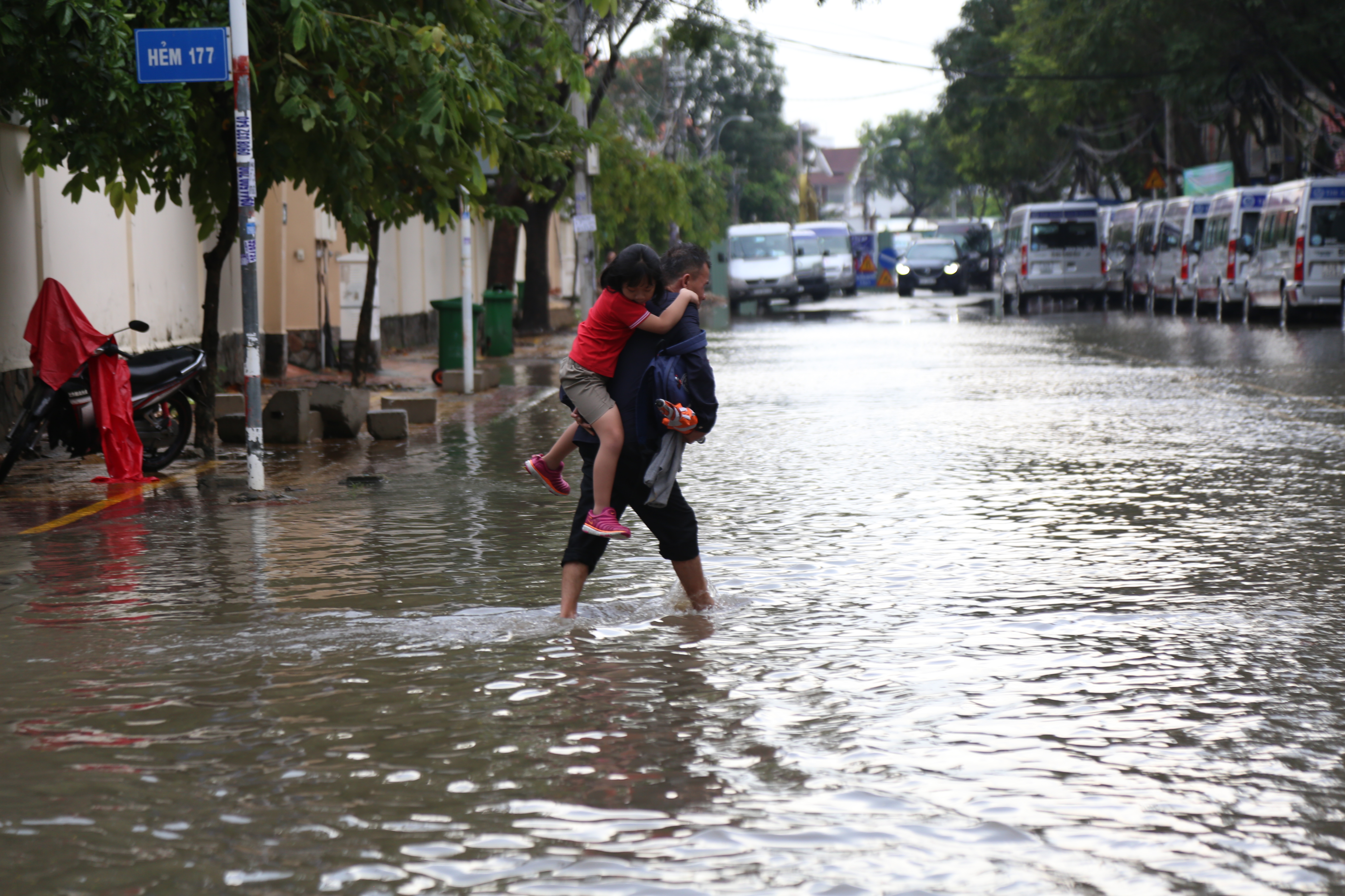 Trong khi các nam sinh hoặc nữ sinh lớn thì được người lớn dẫn dắt lội nước, còn các em nhỏ hơn thì được ẵm trên vai ra xe ô tô về nhà. Nhiều phụ huynh cũng khá lo lắng vì nước ngập sâu, ô tô không thể vào trước cổng trường đón con mình.