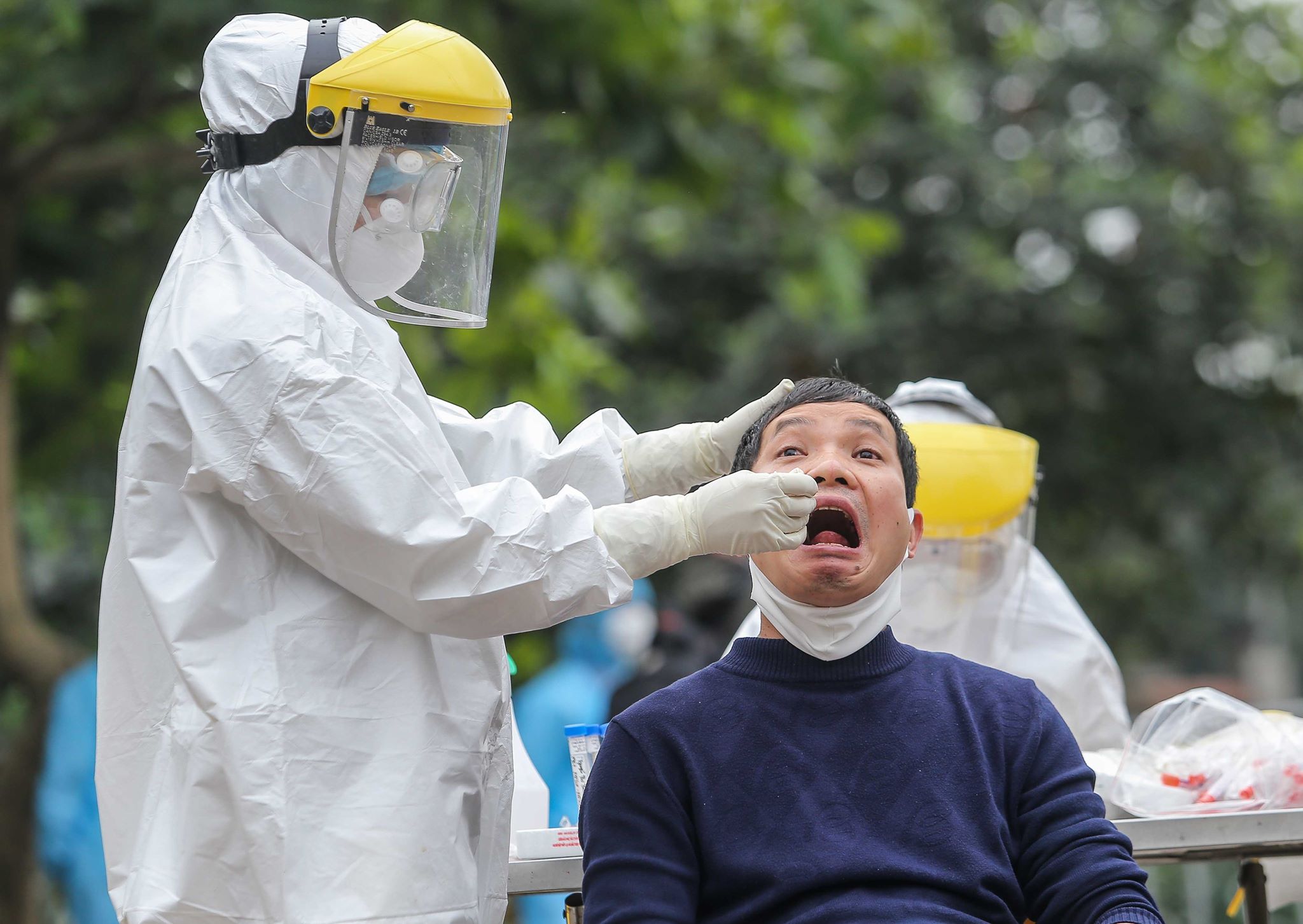 Hình ảnh Trung tâm kiểm soát dịch bệnh lấy mẫu dịch họng của người dân để xét nghiệm COVID-19.