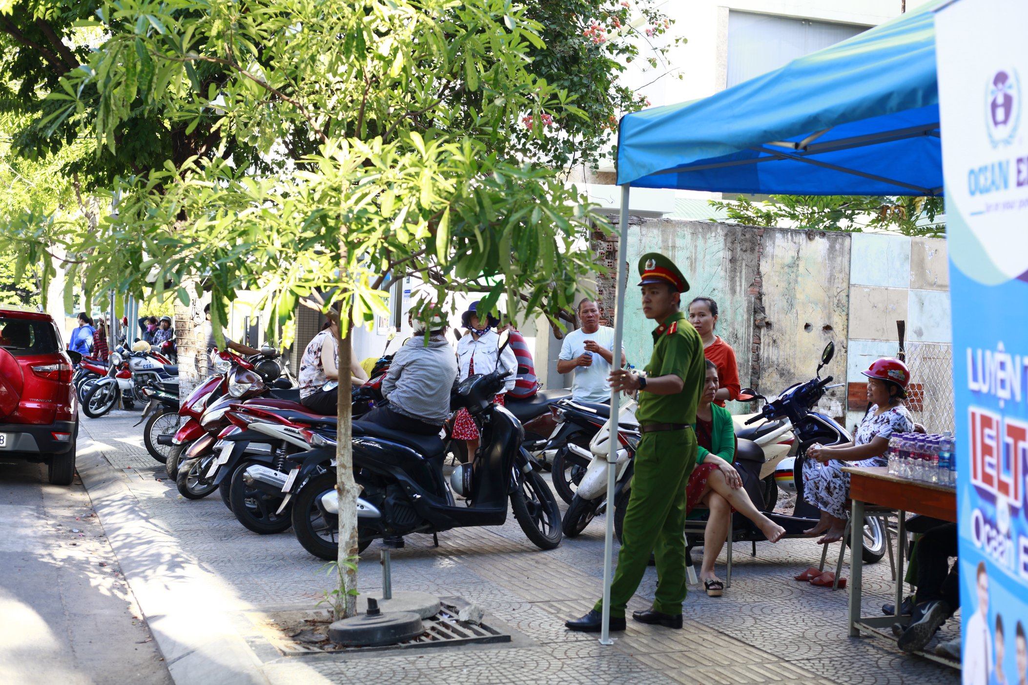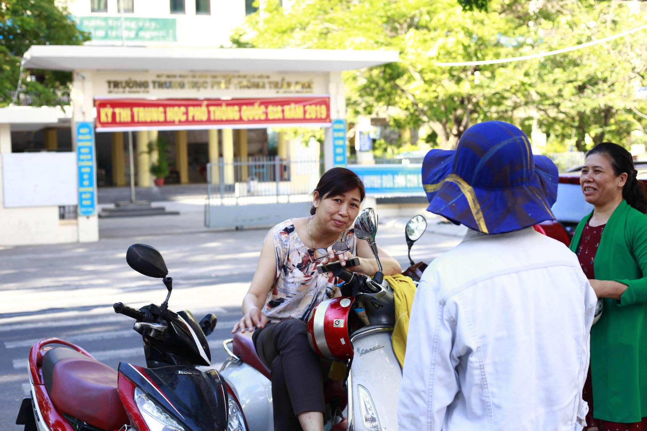 Dù thời gian thi tận 150 phút nhưng phụ huynh vẫn không quản ngại thời tiết nắng nóng.