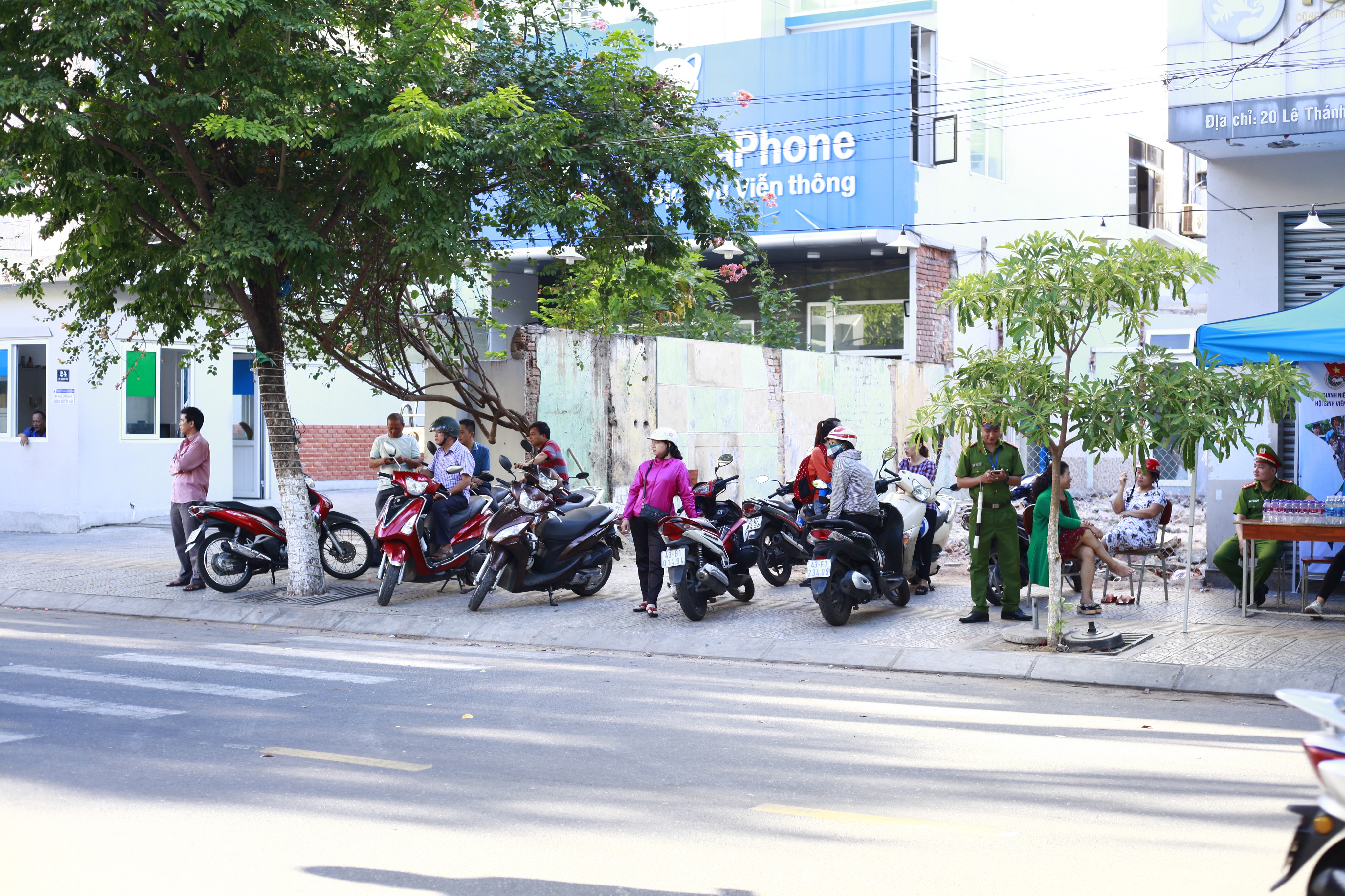Các thí sinh đi thi, phụ huynh cũng tất bật từ sáng sớm.