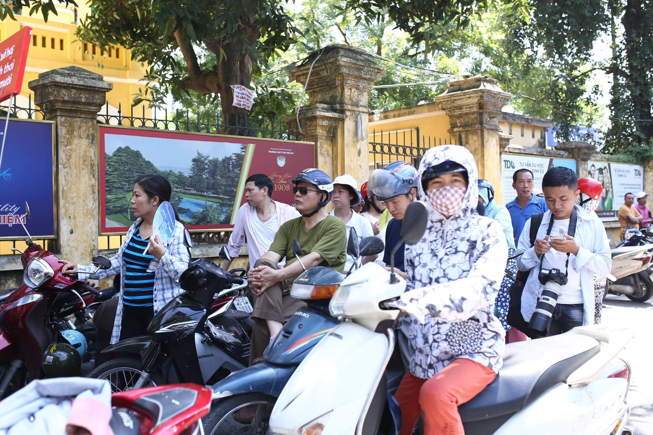 Rất đông phụ huynh đứng gần cổng trường THPT Chu Văn An sáng nay để chờ con hoàn thành các môn thi.