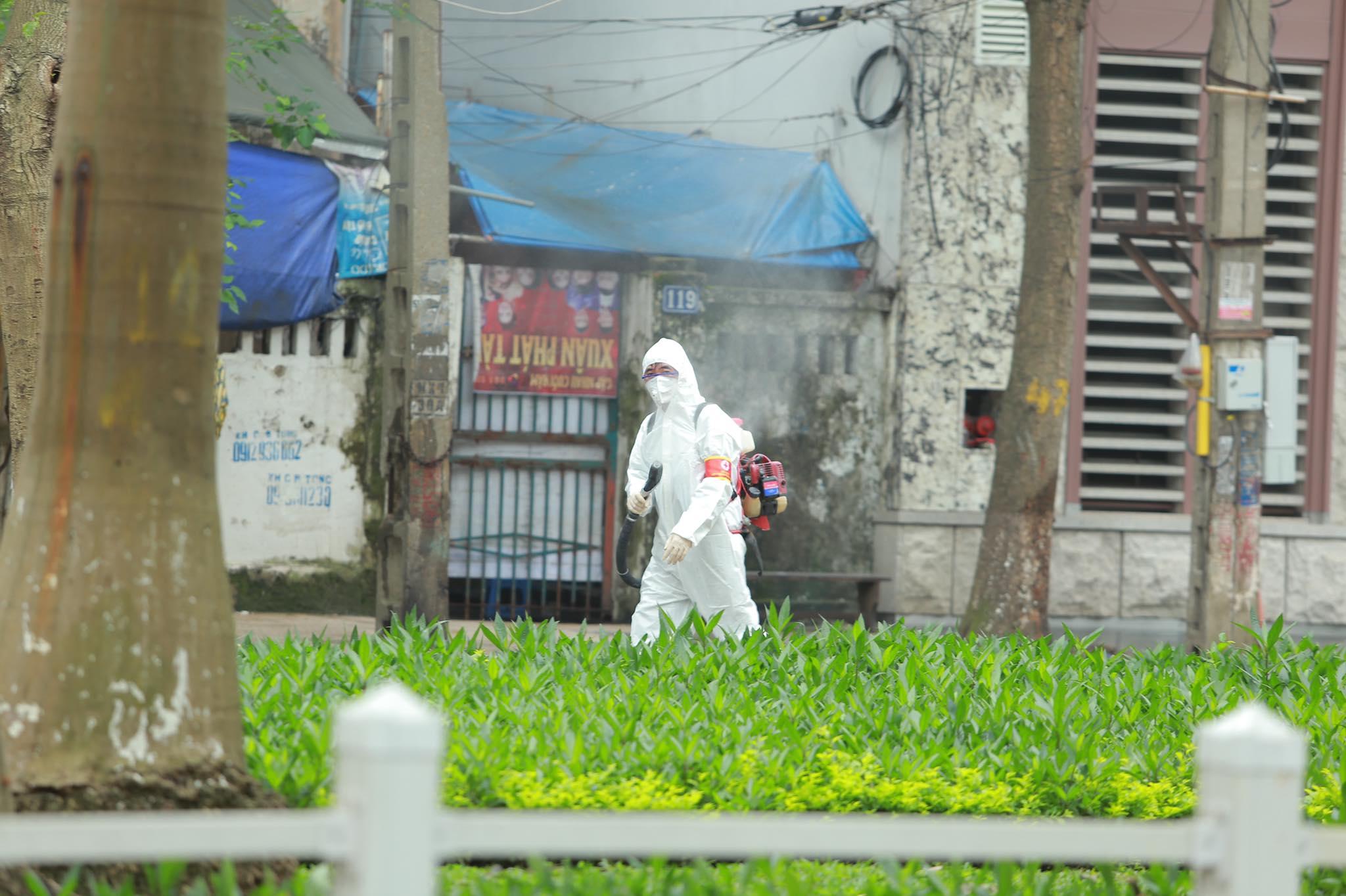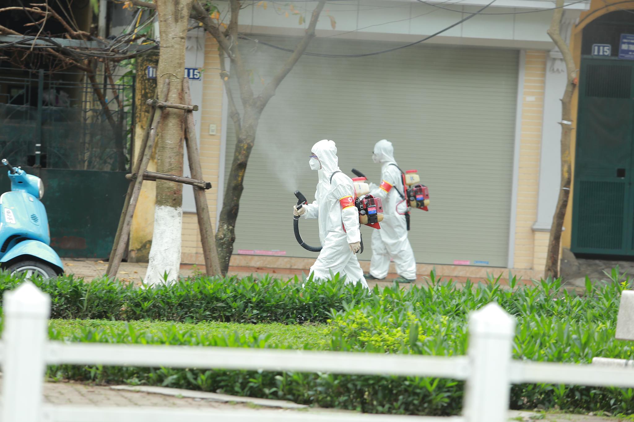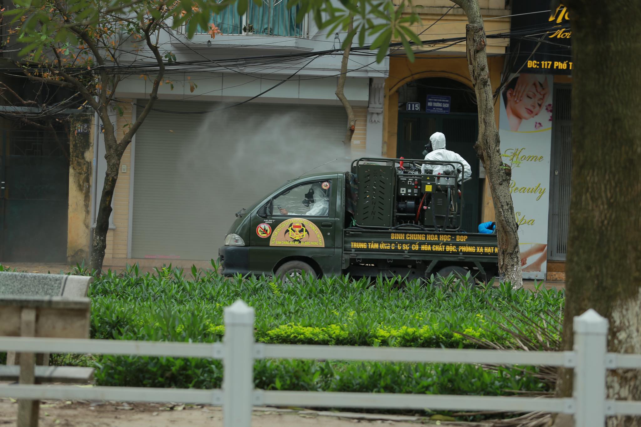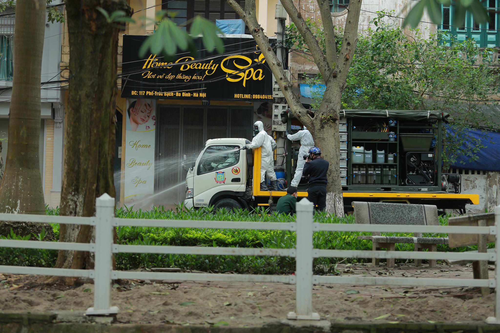 Sáng nay (7/3), Binh chủng hóa học đã tiến hành triển khai lực lượng đến khu vực phố Trúc Bạch (quận Ba Đình, Hà Nội) thực hiện việc khử trùng, tiêu độc.