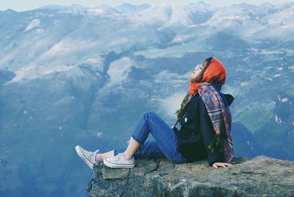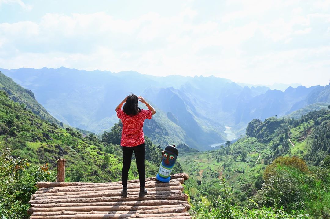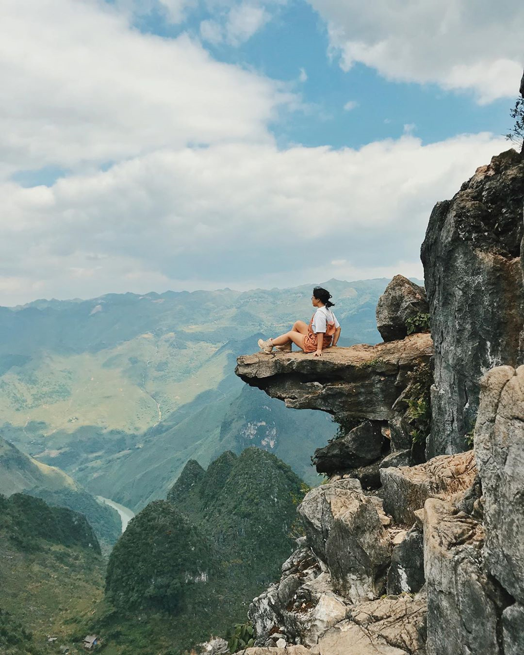 Mỏm đá cheo leo giữa vách núi là điểm check-in được nhiều bạn trẻ lựa chọn để lấy toàn cảnh núi rừng và dòng sông dưới vực thẳm tuyệt đẹp. Ảnh: Justalex.tm.
