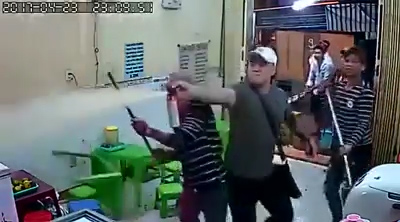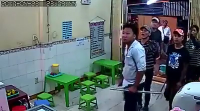 Các thanh niên hung hăng tiến sát vào khu vực nhà trong của quán Kem nhãn chú Tám.