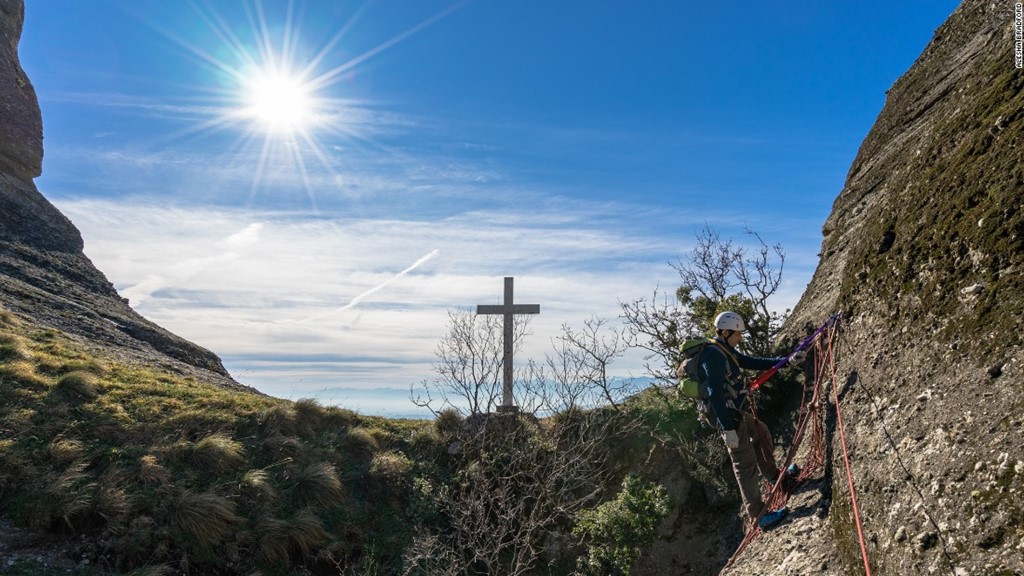 Điểm nhấn tại Meteora là “con đường sắt” Via Ferrata dẫn lên đỉnh Great Saint - ngọn núi cao nhất trong khu vực, được bố trí dây thừng và các dây nối hỗ trợ để leo lên và xuống an toàn.